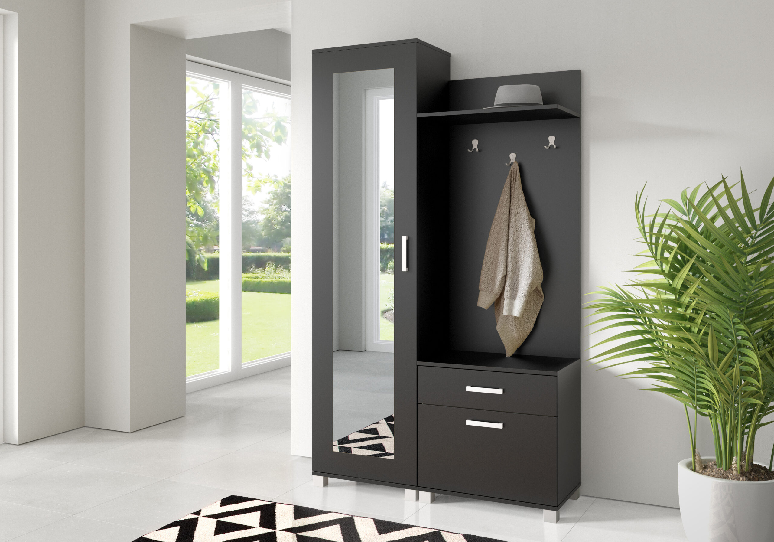 Mebel jest wolnostojący, co oznacza, że przy ustawieniu elementów obok siebie nie potrzeba ich przykręcać do ściany. Trzeba je zabezpieczyć tylko wtedy, gdy elementy będą stały osobno.